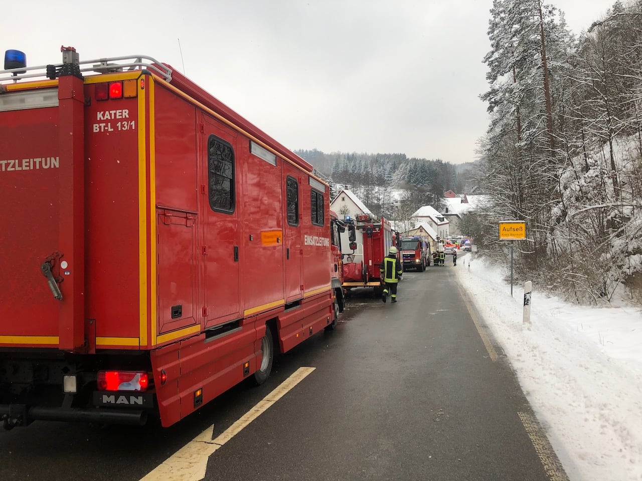 Ein brennender Schuppen rief am Nachmittag des 09. Februar 2021 zahlreiche Einsatzkräfte nach Aufseß.
