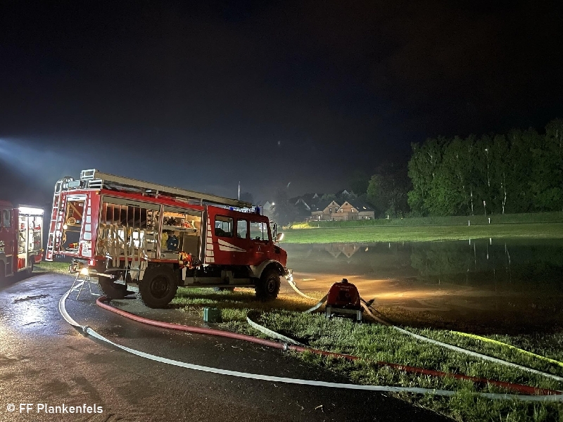 Die Kameraden mussten nach einem Starkregenereignis im Gemeindegebiet Bindlach zusammen mit dem 11. Löschzug des Landkreises Bayreuth verschiedene Einsatz-Aufgaben abarbeiten.